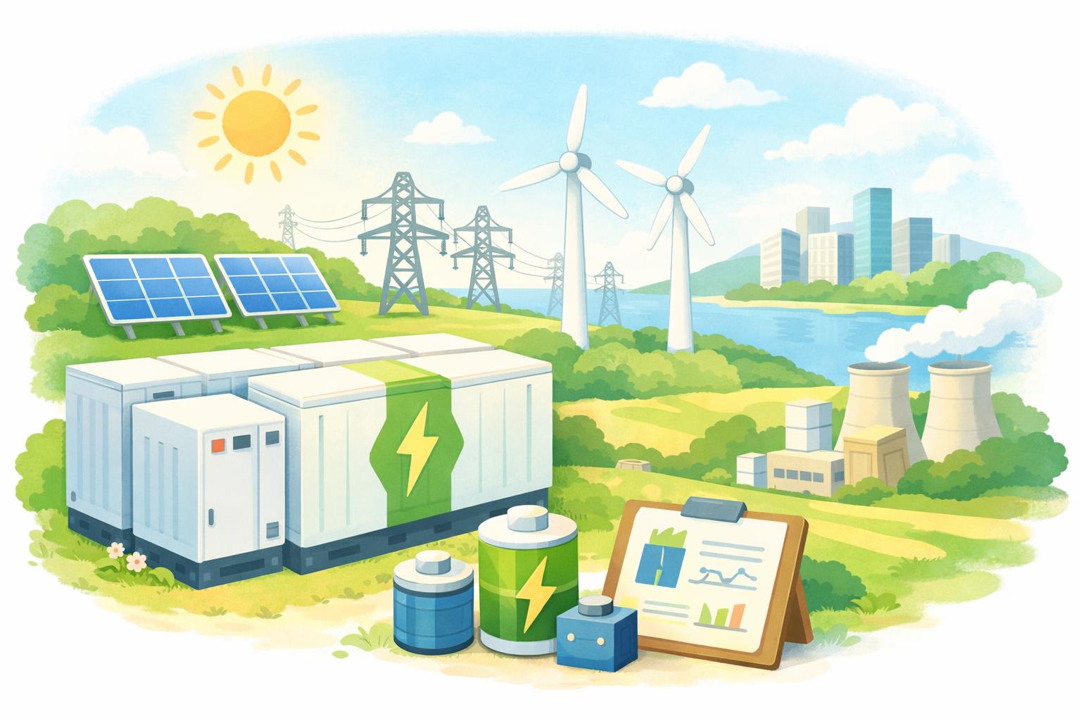 - 再生可能エネルギーの出力変動緩和:太陽光発電や風力発電の出力変動を吸収し、系統への影響を低減します。